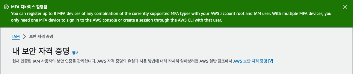 5. 아래와 같은 표시가 뜨며 MFA할당이 완료된다.